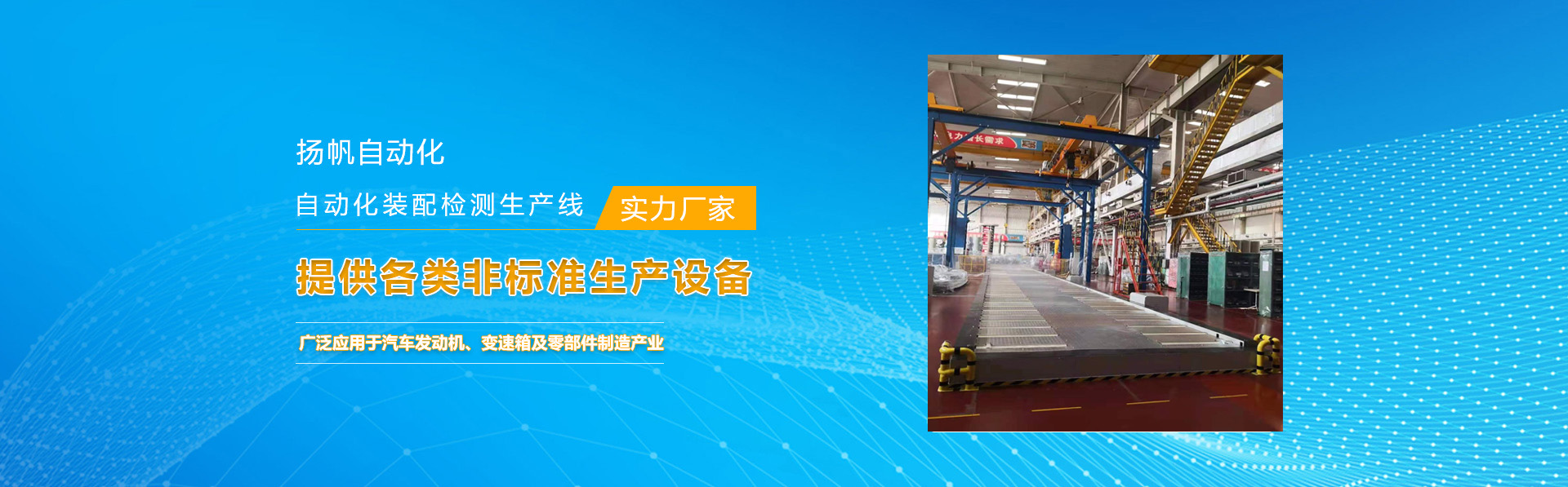 • 汽车发动机及零部件装配线 • 压铆设备系列 • 生产线系列 • 非标准夹治具及专机设备 • 涂装系列 • 板台、推车、货架系列